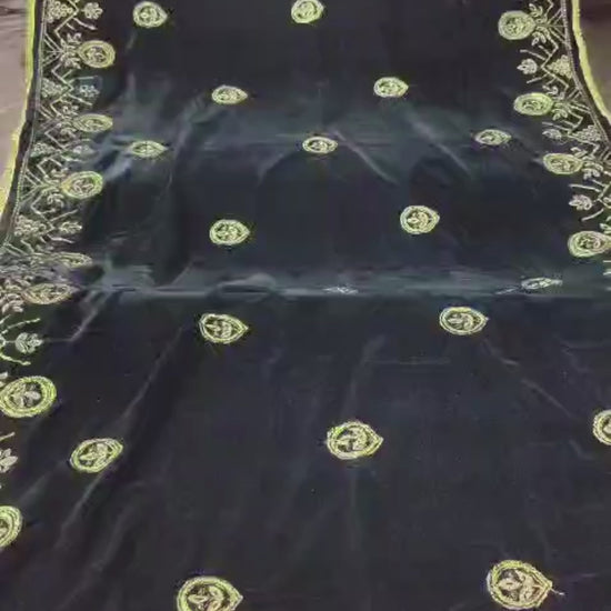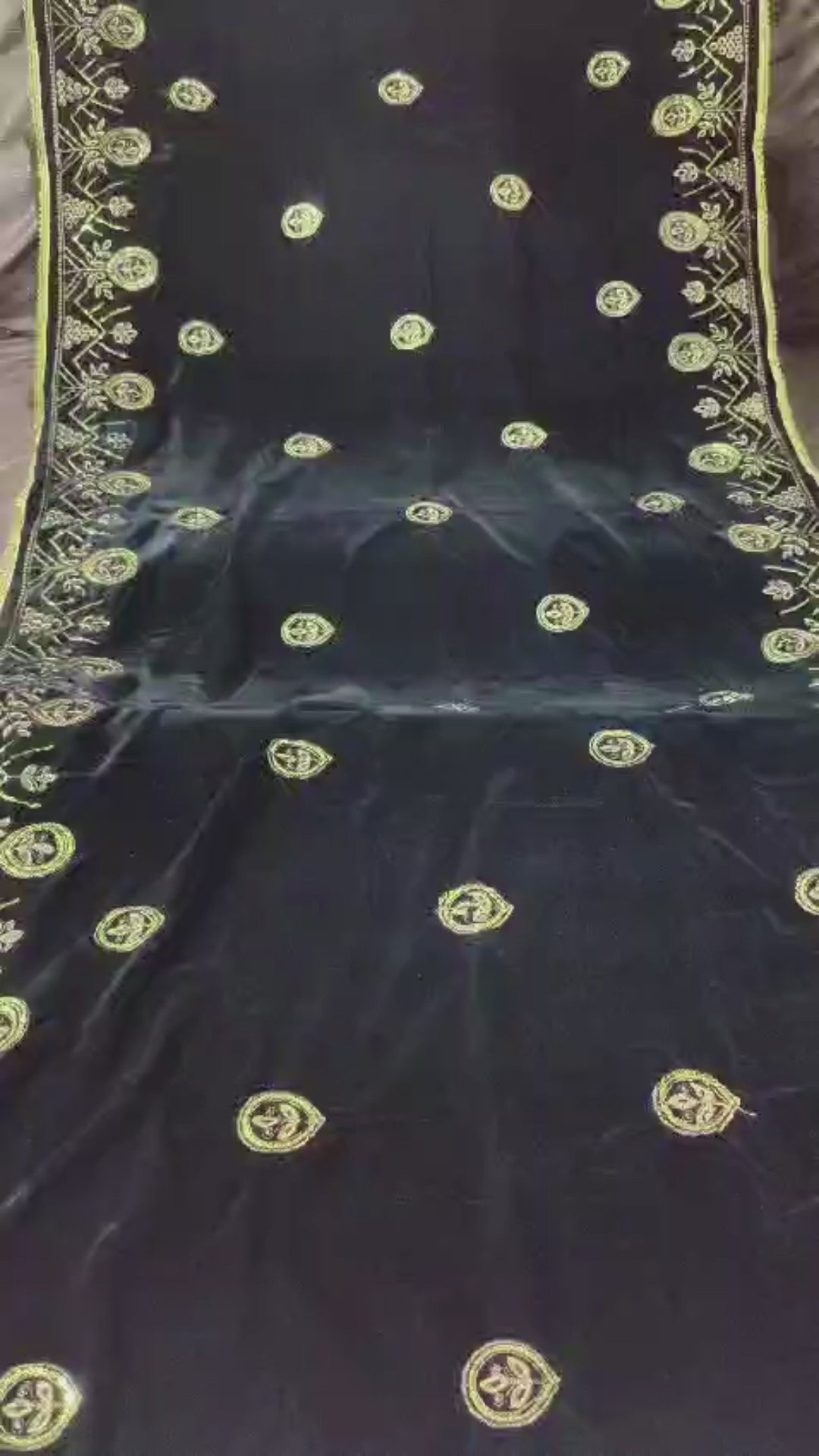 Regal Appeal: Deep black velvet contrasts beautifully with golden Embroidery.