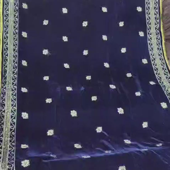 BLUE VELVET SHAWL WITH GOLDEN EMBROIDERY(4 sided border)